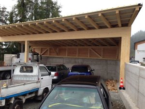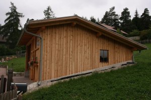 Bau einer Holzhütte, sowie eines Fahr- und Motorradunterstandes