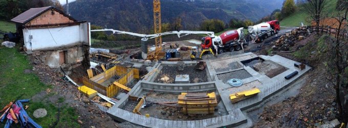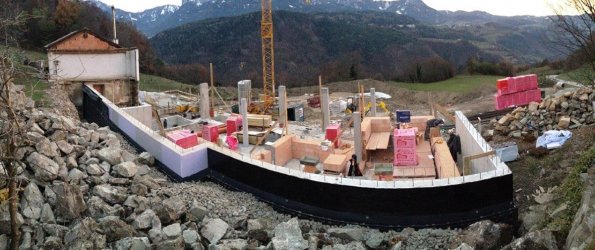 Projekt für den Abbruch und Wiederaufbau des Wirtschaftsgebäudes und Bau einer Wohnung
