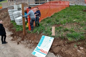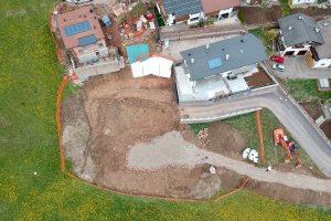 Bau eines geförderten Wohnhauses mit zwei Wohneinheiten, sowie von zwei Garagen als Zubehör zum den Wohneinheiten